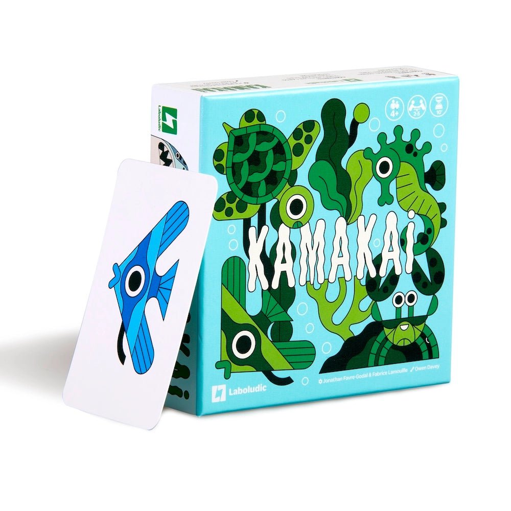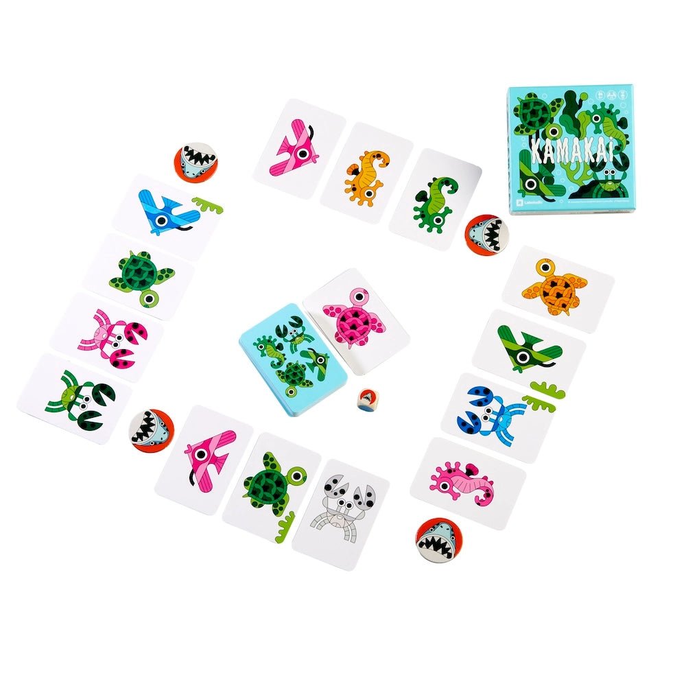 Go and meet the animals that inhabit the seas. But the terrible Kamakai, the largest of the tiger sharks, also lurks in these waters. Be the first to collect 1 fish, 1 turtle, 1 crab, and 1 seahorse in front of you. And beware of tiger shark attacks! A simple roll of the die could scare one of your animals away. A magnificent game of chance and awakening, for children from 4 years old, illustrated by Owen Davey.