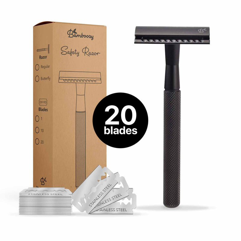 Safety Razor Stainless Steel + 20x Blades - Black - jiminy eco - toys