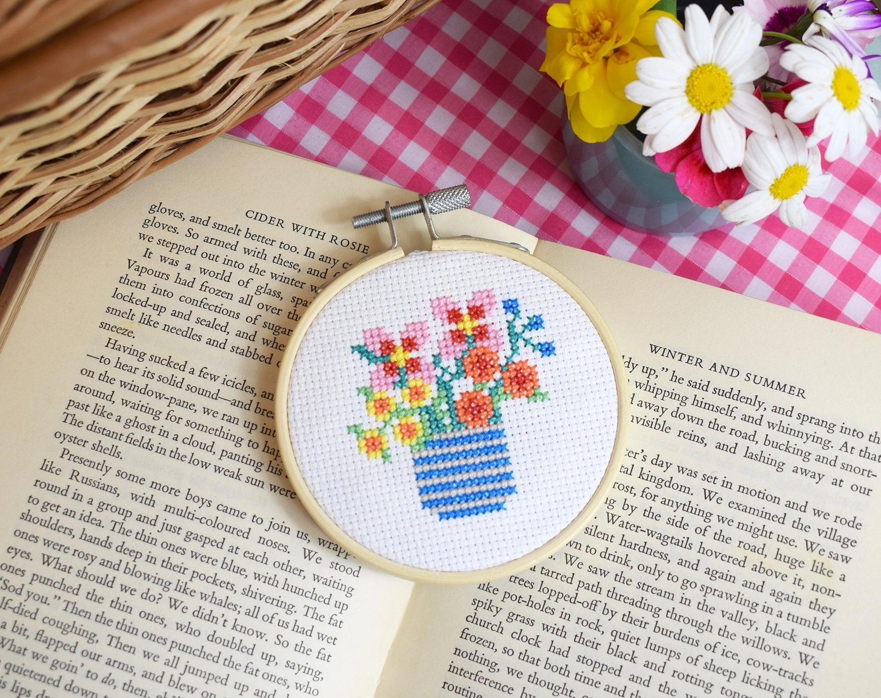 We have picked all the beautiful wild flowers you see in cottage gardens and parks, and put them in this darling little cross stitch kit. Use some simple needlework techniques to create the colourful design!